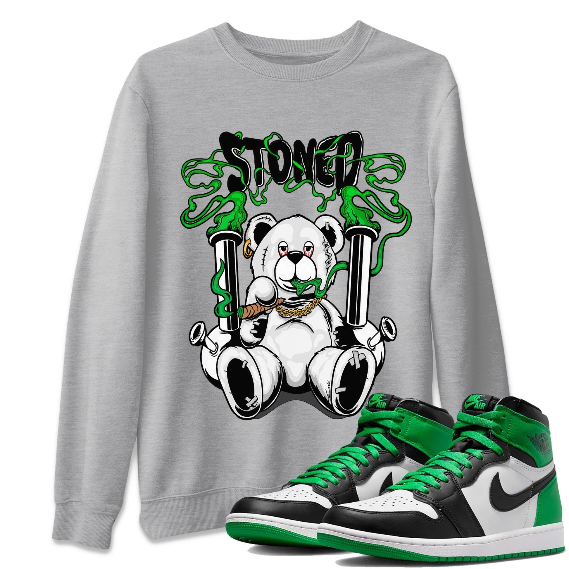 Air Jordan 1 Celtics Sneaker Match Tees Stoned Bear Streetwear Sneaker Shirt Air Jordan 1 Lucky Green Celtics Tees Unisex Shirts Black 1