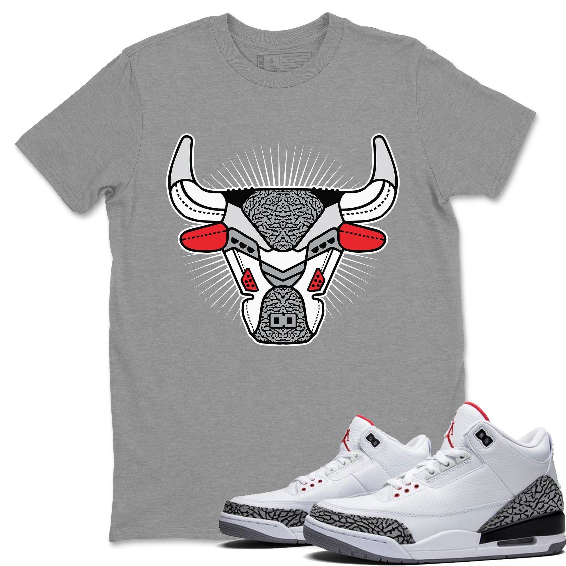 AJ3 Bull Head Crew Neck T-Shirt - Air Jordan 3 White Cement