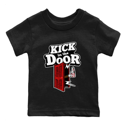 Air Jordan 4 Red Cement Sneaker Match Tees Kick In The Door Streetwear Sneaker Shirt AJ4 Red Cement Sneaker Release Tees Kids Shirts Black 1